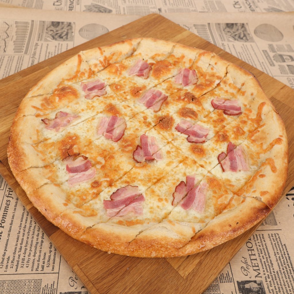 Ingrediencie: pizza cesto, slanina, mozzarella